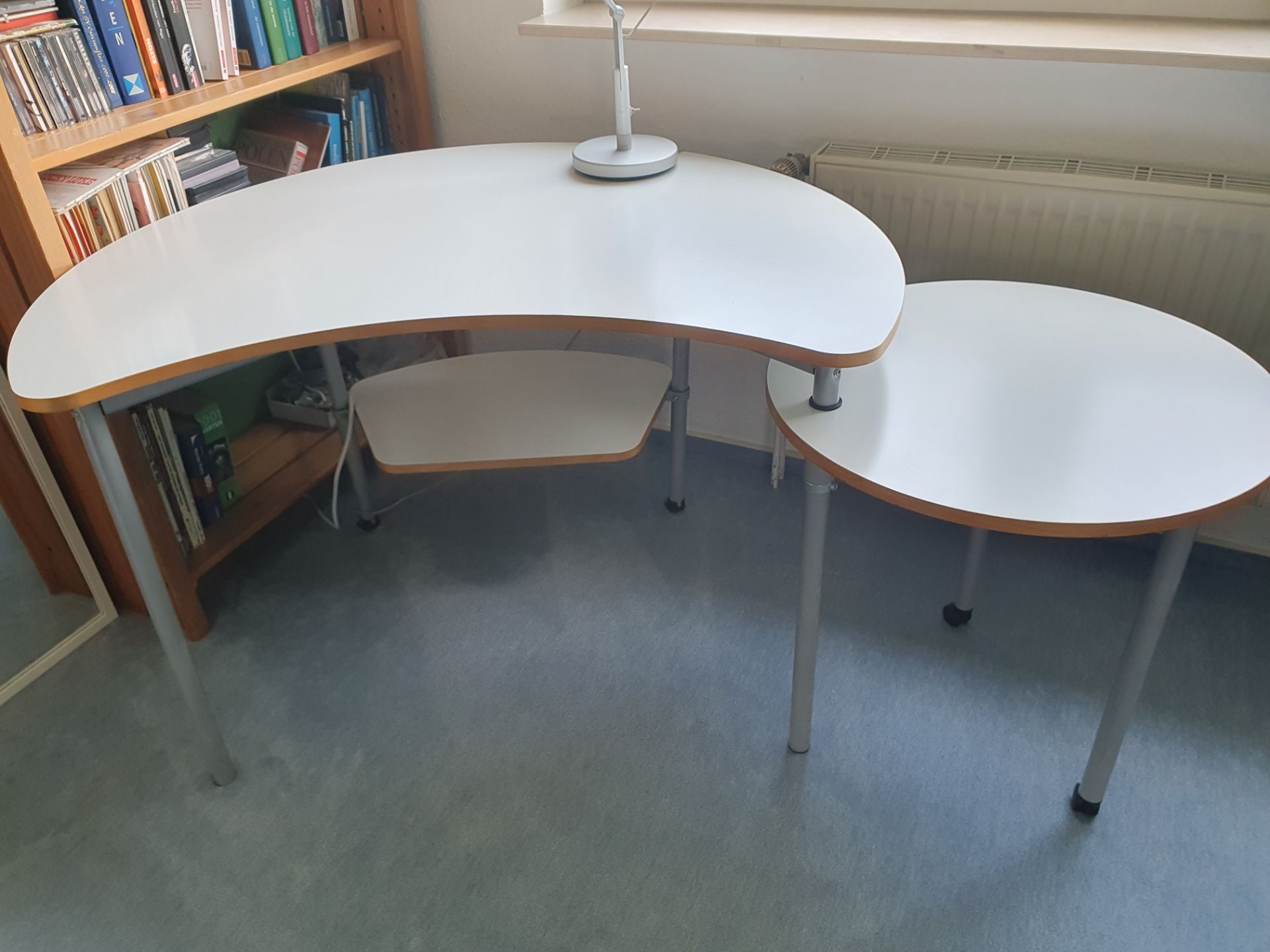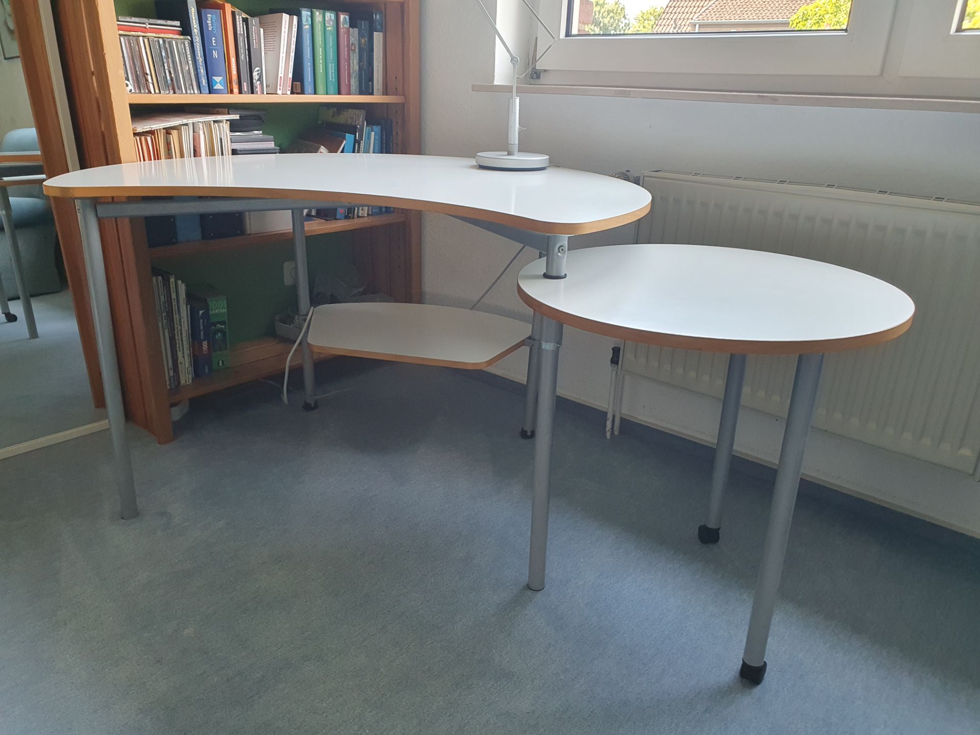 Sehr gut erhaltener Schreibtisch, halbrund mit rundem, drehbarem Seitentischchen, passt gut in einer Ecke, platzsparend