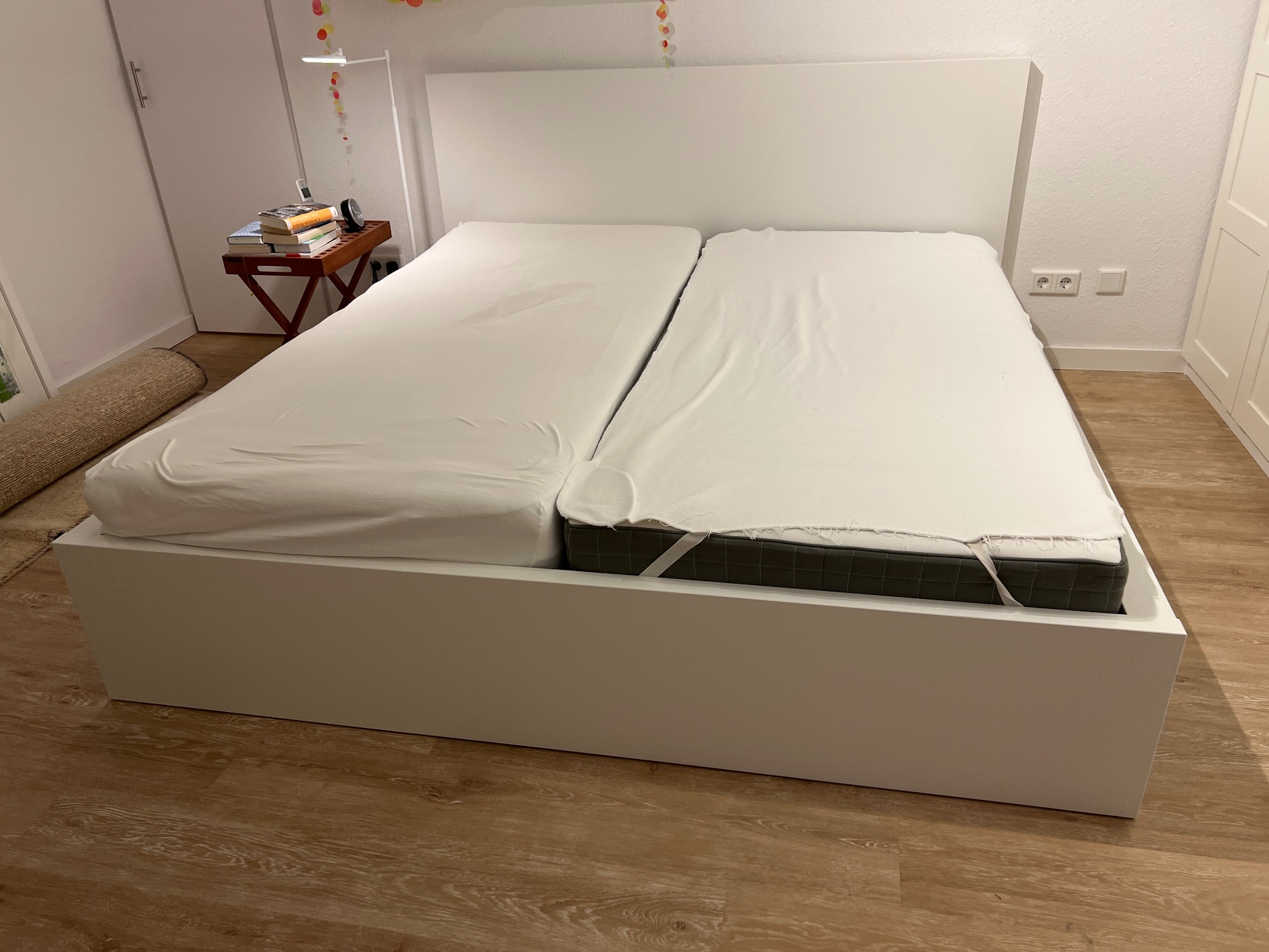 Zu verschenken ist ein weißes Doppelbett (Malm von Ikea) mit Kopfteil , 2 Bettschubladen, Lattenrost und zwei Matratzen. Das Bett ist 2 Jahre alt und in einem sehr guten Zustand. Es muss abgebaut werden und ist an Selbstabholer zum Eigennutz abzugeben.