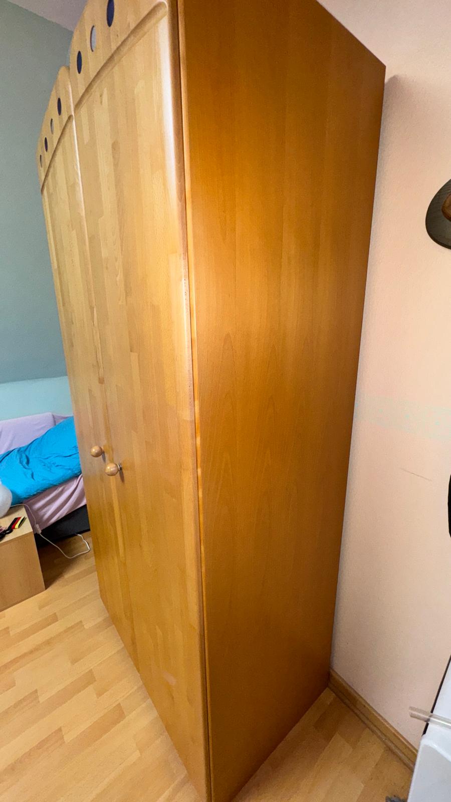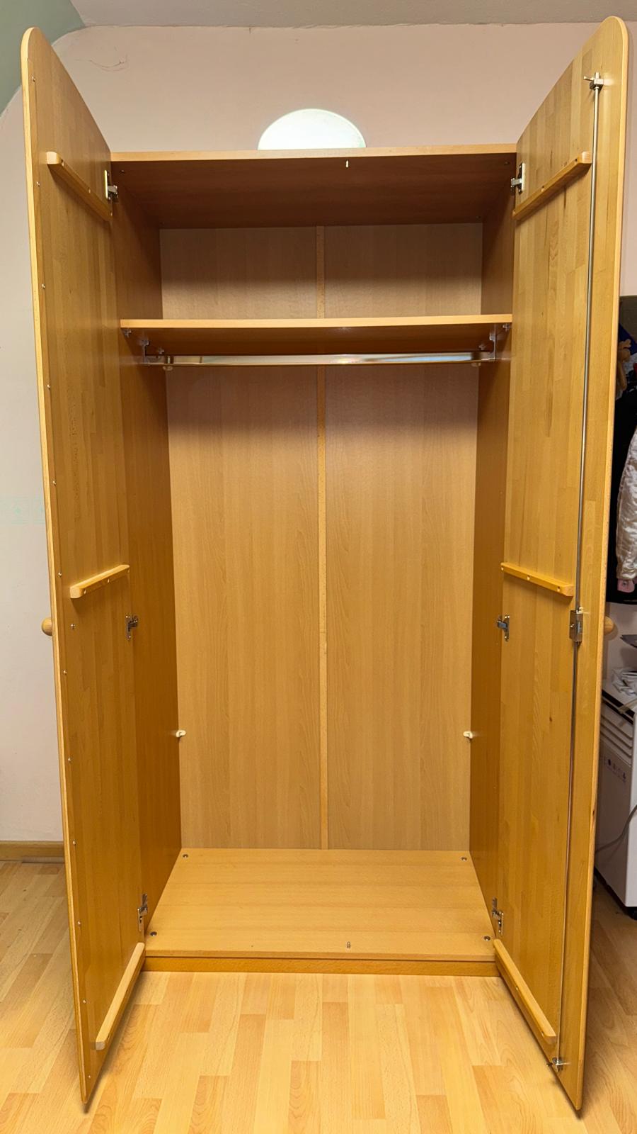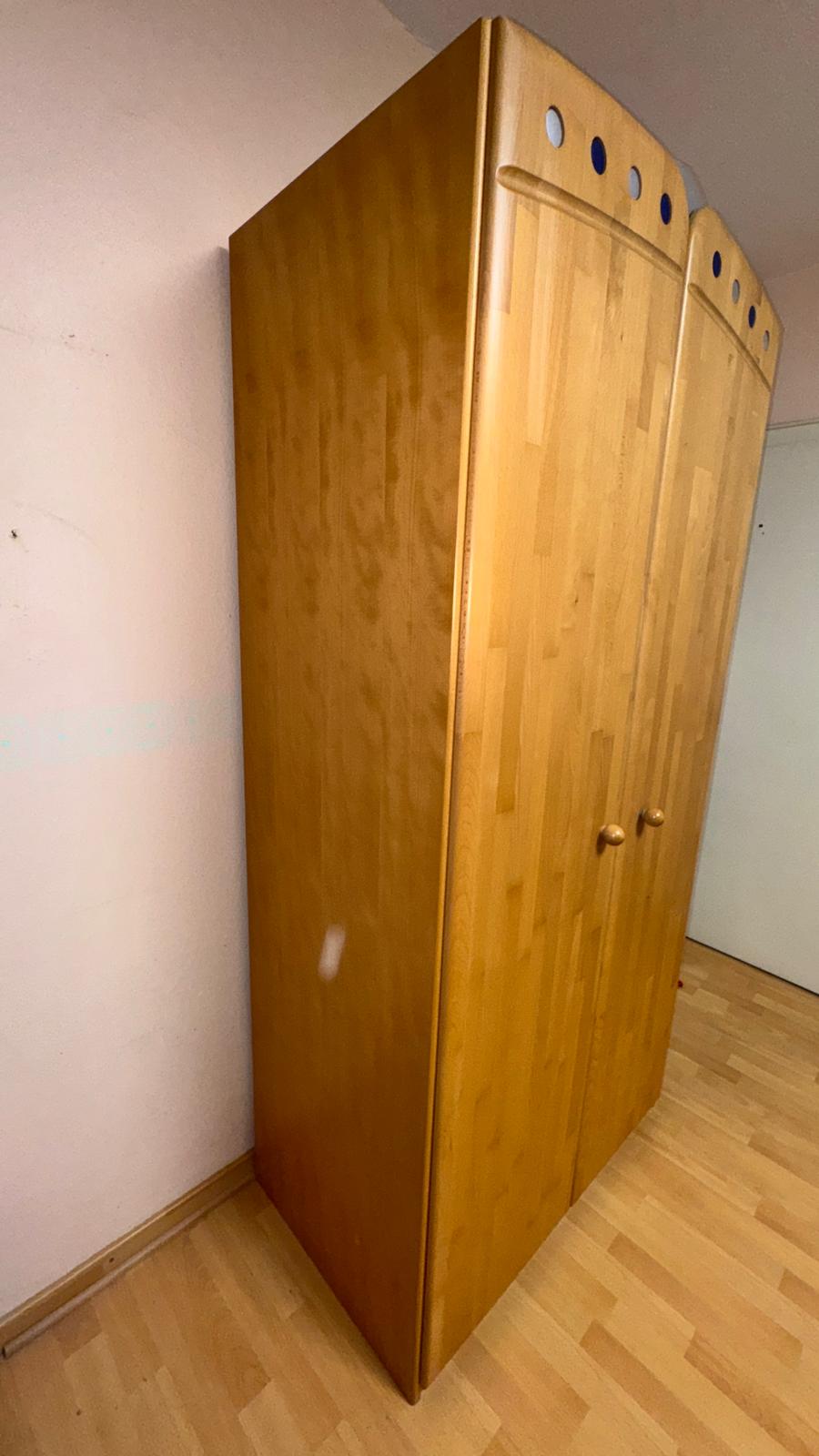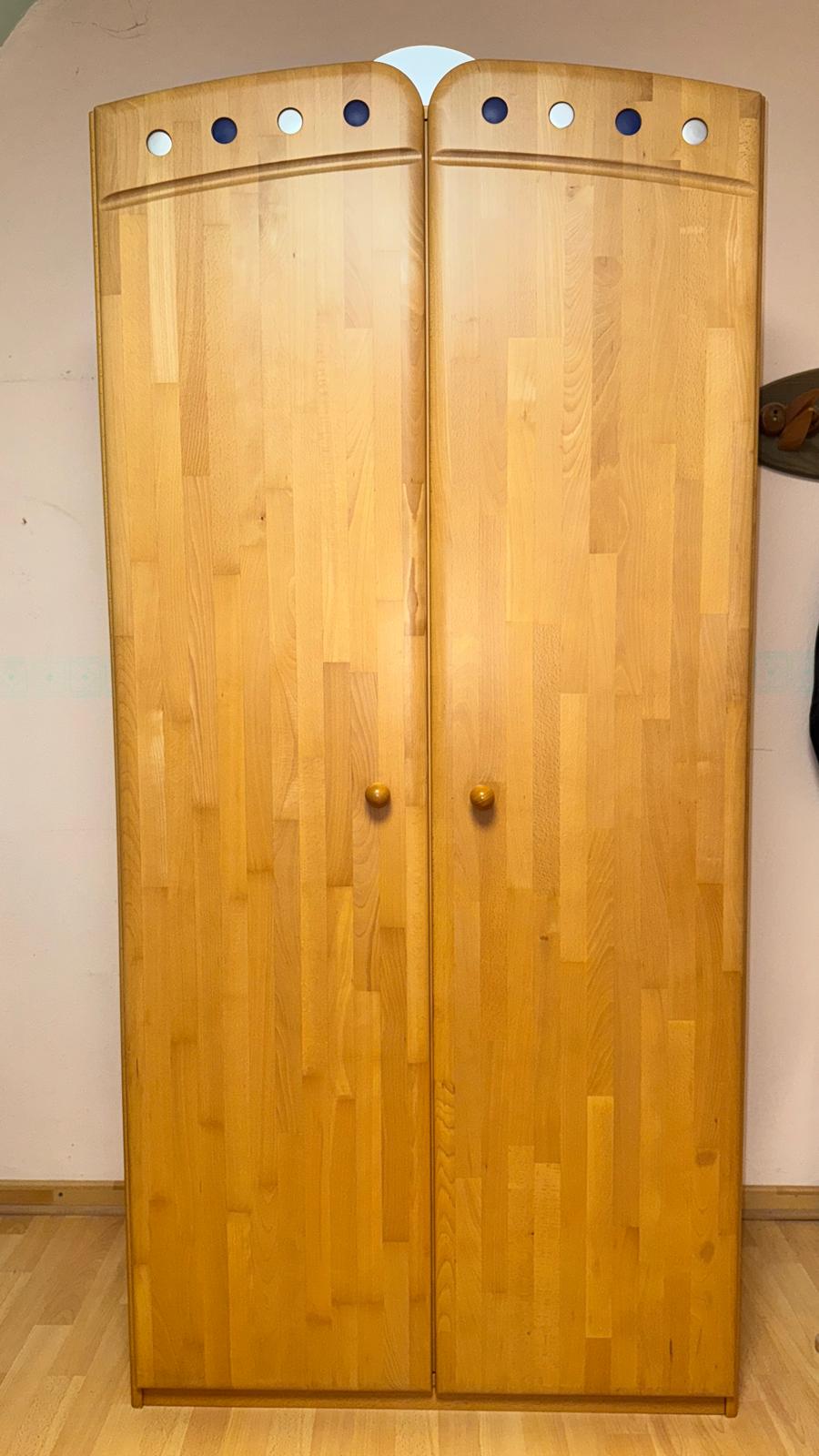 2-türiger Kleiderschrank aus dem Programm SAM von Welle Möbel. Fronten Buche Massiv, Korpus Echtholz-Furnier. Ausstattung wie auf den Fotos zu sehen. Der Schrank ist in einem sehr guten Zustand.
