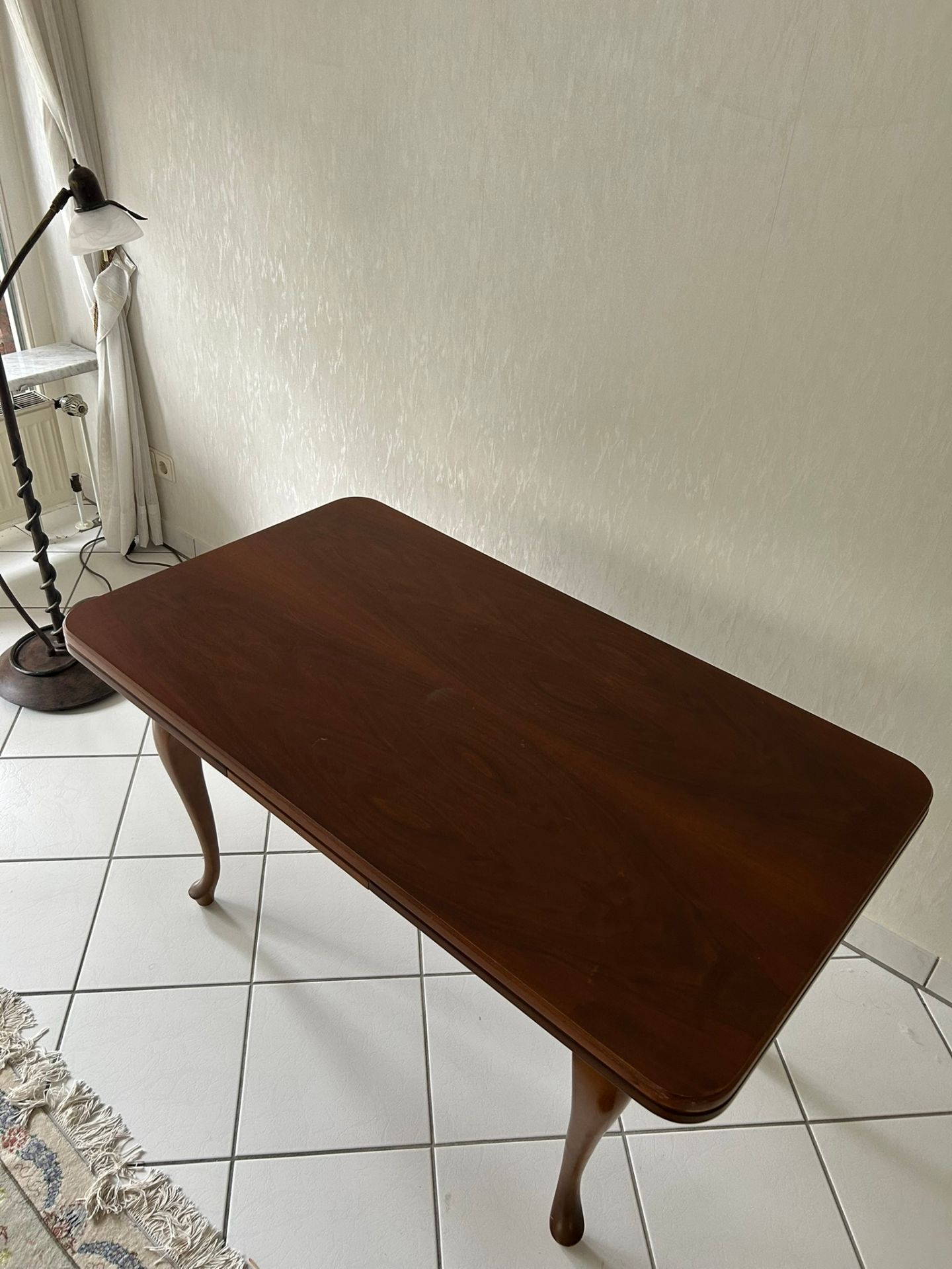 Wir geben ab einen wunderschönen vintage Couchtisch im Chippendale-Design. Er hat zwei Auszieh-Teile. Die Tischplatte hat an einer Ecke einen leichten Wasserfleck (siehe Foto). Der Tisch ist sehr solide gebaut.