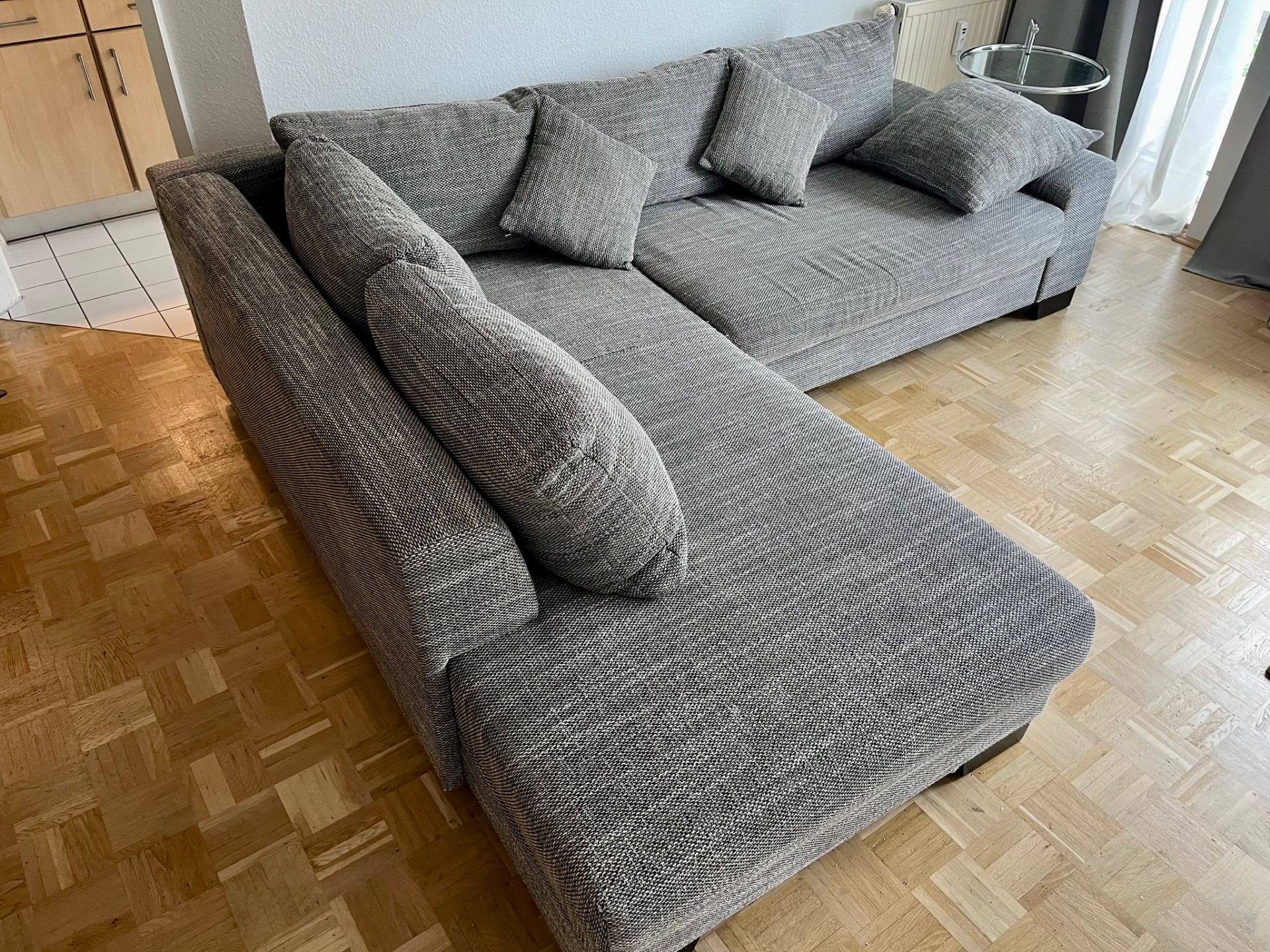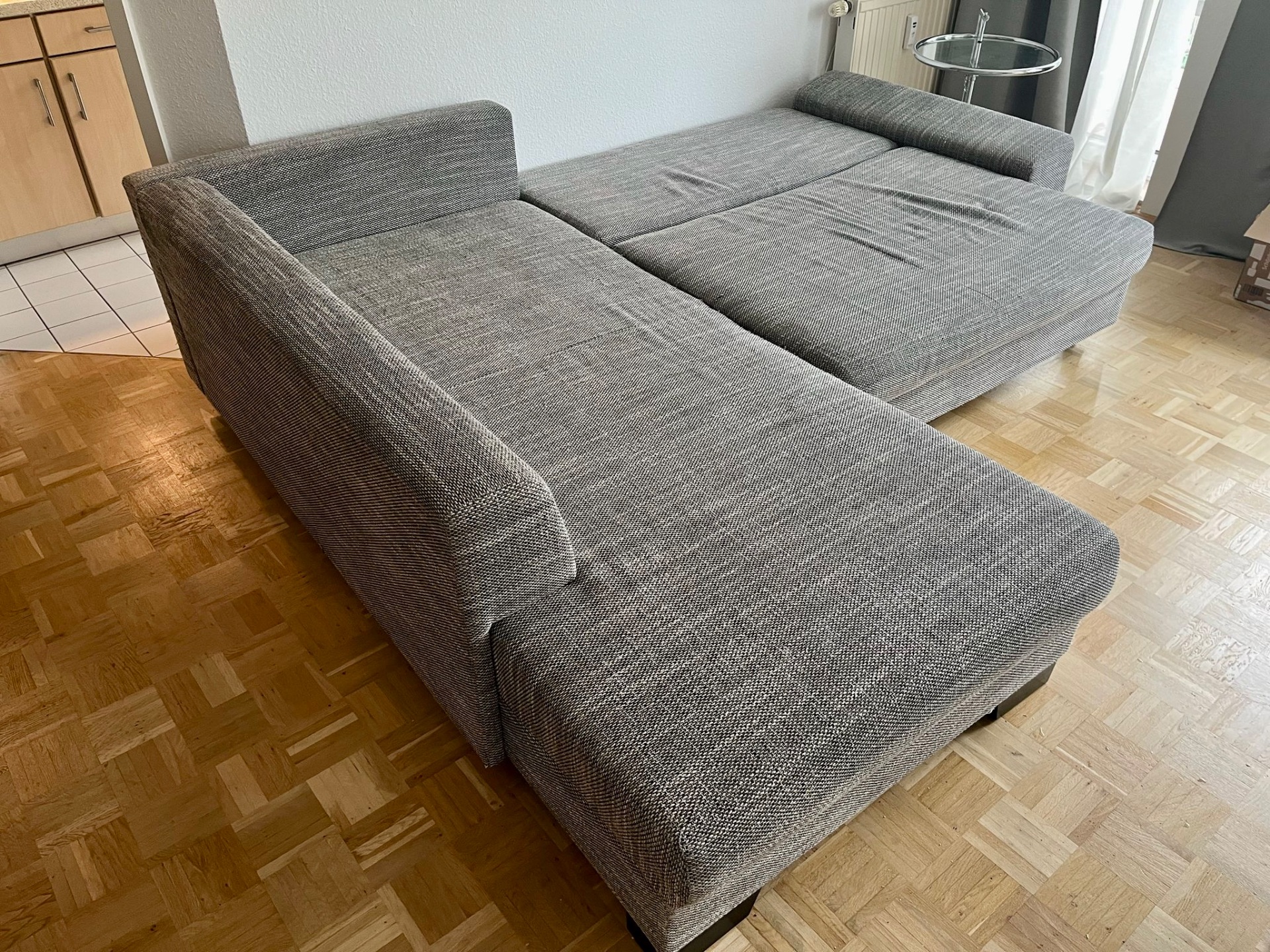 Wir bieten unser ca. 7 Jahre altes Ecksofa / Wohnlandschaft am. Das Sofa ist funktional und bequem, weist jedoch sichtbare Gebrauchsspuren auf (siehe Fotos), unter anderem eine kleine Beschädigung sowie Abnutzungen im Stoff. Die Beschädigung ist nur zu sehen, wenn das Sofa im Schlafmodus ausgezogen ist. Die Couch eignet sich gut für Wohnzimmern oder als Schlaflösung Nichtraucherhaushalt und keine Tiere. Bei der Abholung bitte auch Selbstabbau.