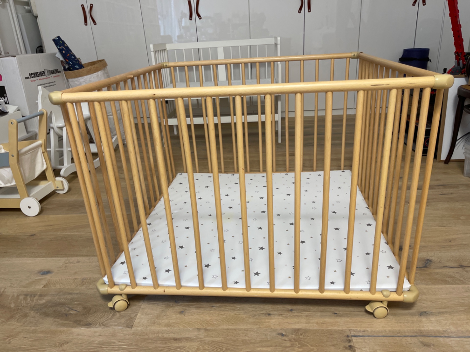 Laufstall naturholz mit Rollen. Innenfläche 1m x 1m. Gitter einfach auseinander zu bauen.